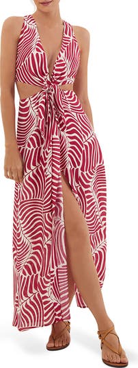Waist-baring cutouts add alluring detail to a cover-up dress that's cut with a touch of silk to elevate the look and feel of your beach-day ensembles.