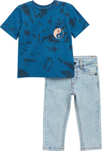 Baby will be looking cool while staying comfortable in a cotton-blend set pairing a graphic T-shirt with light-wash skinny jeans.