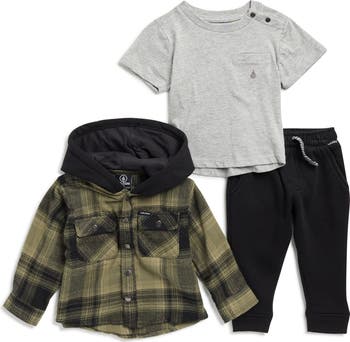 - Includes shacket, T-shirt and joggers