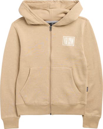 Keep your kiddo cozy in this cotton-blend fleece zip-up hoodie styled with a chest logo and handy kangaroo pocket.