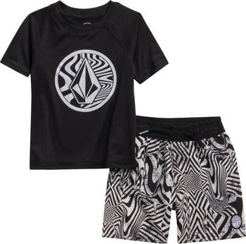 Enjoy a day at the beach while protecting baby's skin in this rashguard top complete with swim shorts for them to splash and play in.