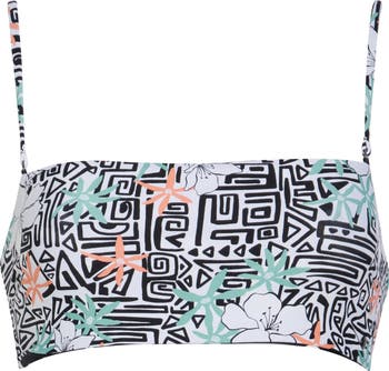 Switch up your beach look in seconds with this bandeau bikini top featuring a floral-geometric print on one side and black-and-white blooms on the other.