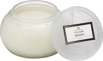 What it is: A coconut wax–blend candle hand-poured into a glass vessel embossed with beautiful Japonica detailing and finished with a matching lid.