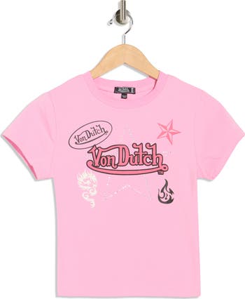 Add a hit of Y2K nostalgia to your lineup with this skim-fit, slightly cropped cotton T-shirt stamped with signature brand graphics.