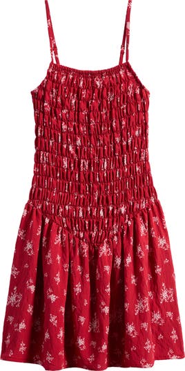Your budding trendsetter will bloom in this stretchy smocked dress done in a dropped-waist silhouette.