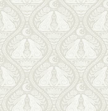 A Scandinavian twist on a traditional damask, this enchanting design is perfect for styling a gender neutral nursery or kids playroom. Rabbits sit amongst the flowers under the moonlight in this whimsical peel and stick wallpaper. Cream Moon Rabbit Peel and Stick Wallpaper comes on one roll that measures 20.5 inches wide by 18 feet long. Taupe Scandi damask peel and stick wallpaper; Peel and stick to apply.