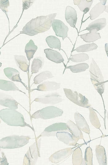Achieve a welcoming and serene ambiance in your home with this botanical peel and stick wallpaper. Atop a white backdrop, muted aqua leaves with grey accents combine to create this stunning nature trial.