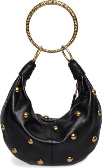 Rustic, brassy hardware lends a stylish edge to this crescent-shaped bag featuring an O-ring and optional adjustable strap for easy everyday styling.