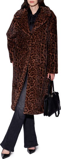 This faux-fur coat blends high-society sophistication with a bold rock-and-roll edge. Designed with a relaxed fit and midi-length silhouette, it features convenient pockets and snap-button closures for everyday ease.