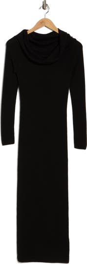Stay cozy and look chic in this alluring off-the-shoulder sweater-dress knit from soft, woolly yarns.