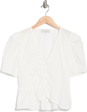 Delicate lace trim fuels the sweetness of a pure-cotton top that flares out into a darling peplum sure to charm any audience.