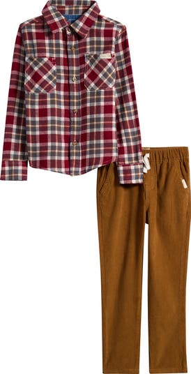 Your little one will look picture-perfect in this two-piece set featuring a brushed flannel button-up shirt and coordinating cotton corduroy pants.