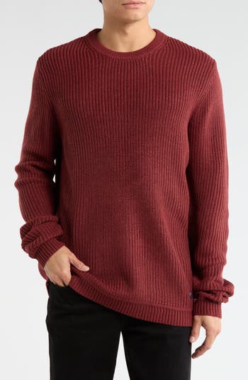 Vertical ribbing adds texture to this midweight crewneck sweater finished with logo embroidery near the hem.