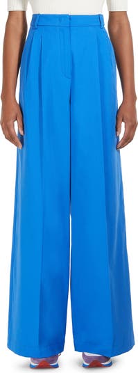 Achieve desk-to-dinner perfection in these stretch-kissed cotton pants featuring a fabulous high waist, flowy wide legs and a bold blue shade.