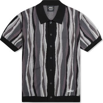 Wavy stripes pattern this short-sleeve button-front cardigan knit from breathable cotton yarns.