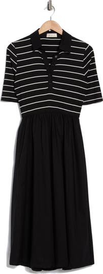 A polo-inspired bodice adds preppy charm to a knit dress that's a comfortable option for warm-weather days.