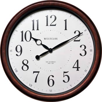 Add timeless charm to your space with this contemporary wall clock featuring precise quartz movement and a woodgrain frame.