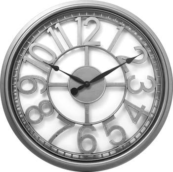 Add timeless charm to your space with this contemporary wall clock featuring a see-through face and an industrial-inspired frame.
