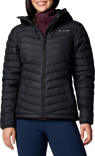 Stay warm and dry on your next adventure in this water-repellent hooded nylon puffer jacket boasting a packable design with 650-fill-power down insulation.