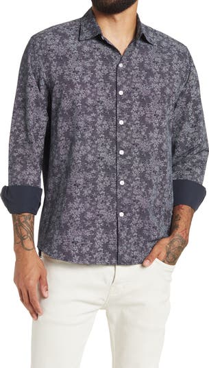 A floral printed sport shirt cut in a comfortable cotton blend offers contemporary style.