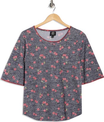 Contrast whipstitching traces the crewneck and sleeve hems of this soft, lightweight knit top.