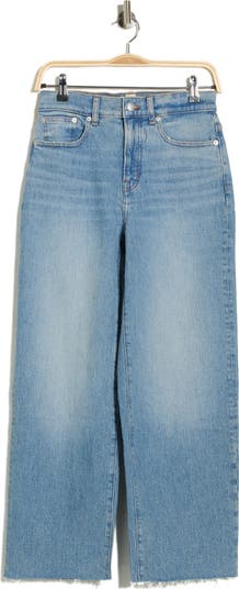 Effortlessly cool in a faded wash, these lightweight jeans feature a high waist and raw-cropped wide legs to update any casual outfit.