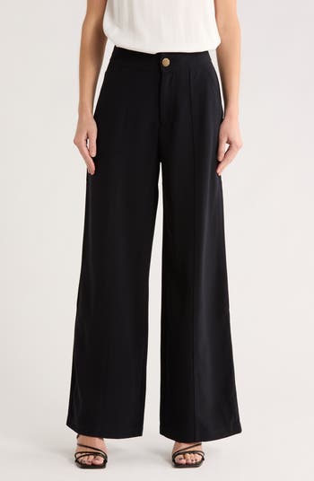 Darts extend down from the waist to give these stretchy pants a tailored fit that opens into a wide leg silhouette.