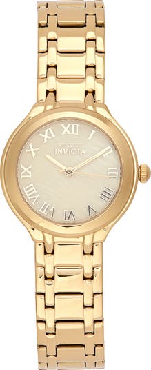 Crisp Roman numerals elevate the mother-of-pearl dial of this elegant everyday watch housed on a stainless steel bracelet.