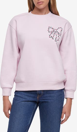 Embroidered Christmas lights outline a sweet bow on this festive cotton-enriched sweatshirt made to keep you comfy and cozy.