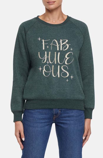 Shimmering holiday lettering brings playful sparkle to this cotton-blend sweatshirt perfect for festive lounging.