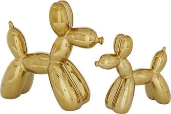 Bring decorative chic contemporary style to your shelves or tabletops with this golden ceramic balloon dog figurine. Made from ceramic, this decorative piece is charming in its ability to add a spark of happiness to its surroundings. Display on shelves or use as quirky office decor. Its main function is to liven up the space. Add this set to your contemporary style collection and watch your living room come to life with style and elegance.