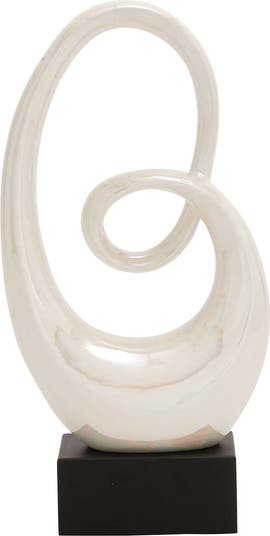 White Ceramic Swirl Abstract Sculpture with Black Base
