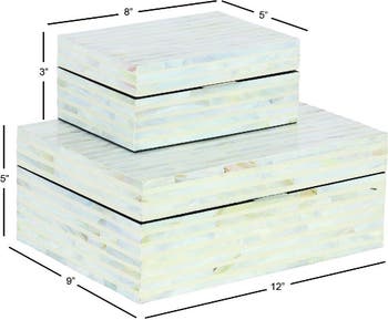 - - Set of 2 - Color: White - Imported Set includes: - 8" x 5" x 3" - 12" x 9" x 5"