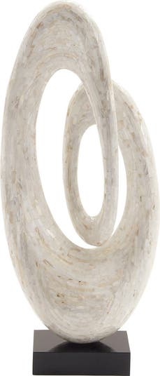 White Mother of Pearl Swirl Abstract Sculpture with Black Base