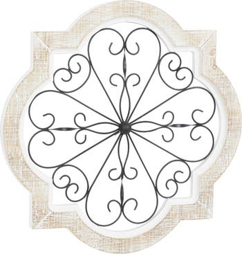 White Wood Scroll Wall Decor with Metal Scroll Work
