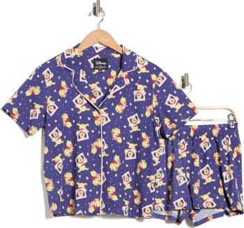 Lounge around in the cozy comfort of these short-sleeve pajamas patterned with lovely Winnie the Pooh and Piglet motifs.