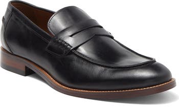 A leather design brings a luxe finish to this classic loafer pair of shoes for fancier occasions.