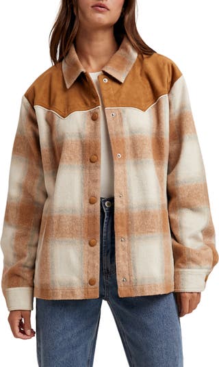 This Western-inspired shirt is covered in lively plaid flannel with a soft brushed texture.