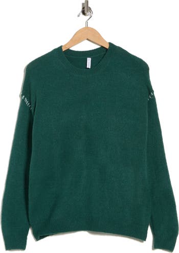 Keep cozy with a sweater knit from supersoft threads with contrast stitching and a drop-shoulder design for a relaxed, casual fit.