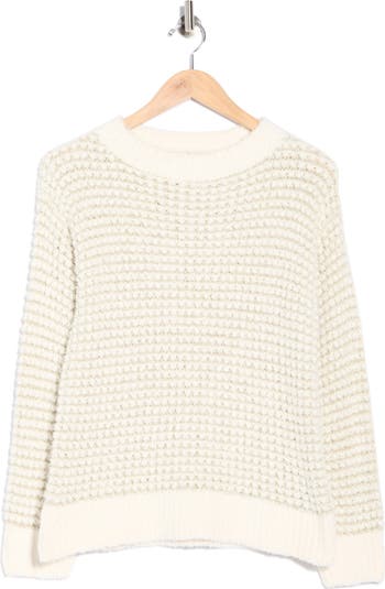 Keep cozy with a pullover sweater knit from bubble-textured, metallic-accented threads and a drop-shoulder design for a relaxed, casual fit.