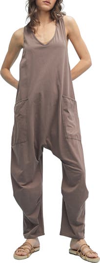 A tapered leg and drop-seam deliver effortless movement in a sleeveless romper outfitted with handy patch pockets for a practical finish.