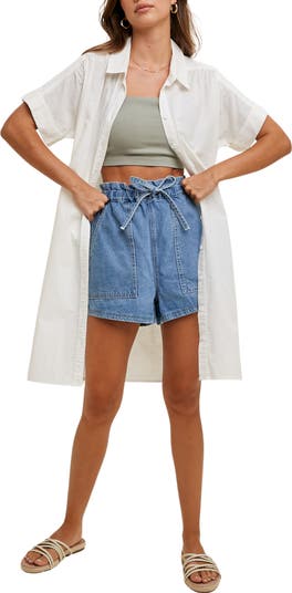 Perfect worn as a dress or layered open as a top, this mini shirtdress is cut from a breathable blend of linen and cotton with three-quarter sleeves.