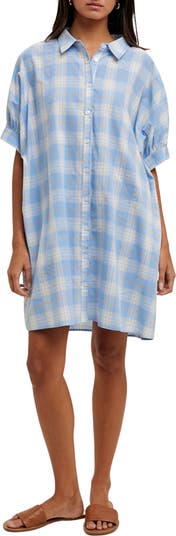 An oversized fit amplifies the comfort and easygoing vibe of a shirtdress cut from pure, breathable cotton.