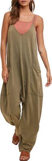Effortless and relaxed, this oversize knit jumpsuit is designed for all-day comfort with an easy, garment-washed finish that gives it a lived-in feel. Crafted from soft stretch cotton, it features a racerback silhouette, adjustable straps and practical pockets.