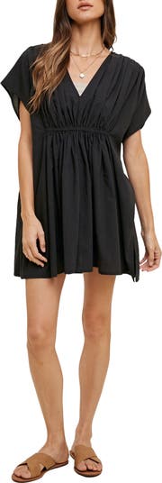 A ruched band defines the waist of an easygoing cover-up dress that's sure to be at the top of your warm-weather packing list.