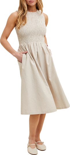 Breeze through your weekend in this sleeveless fit-and-flare dress balancing a smocked bodice with a flowy A-line skirt.