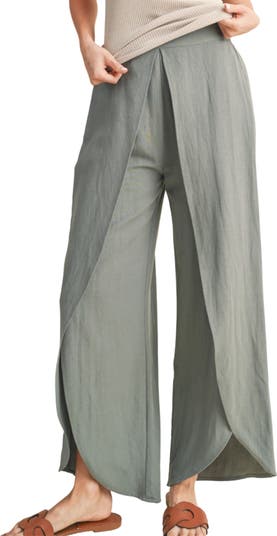 Wide legs allow for effortless movement in pull-on pants with petal-like panels that split over the ankles for a flowy fit.