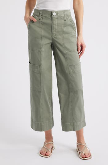 Get things done in these cropped wide-leg pants rendered in a neutral green hue and featuring a high waist and six handy pockets.