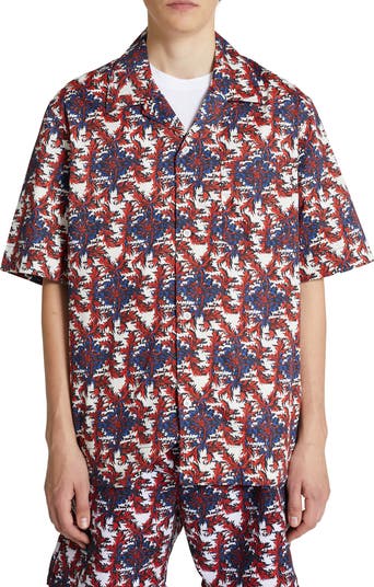 Boldly patterned with a mesmerizing print, this boxy-fit camp shirt is crafted from tightly woven, stretch-enhanced organic cotton for a smooth, silk-like feel.