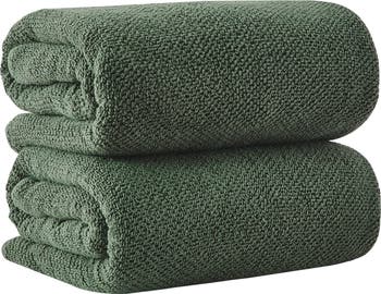 Refresh your bathroom essentials with this pack of textured two-ply bath towels constructed from soft cotton for quick-drying comfort.